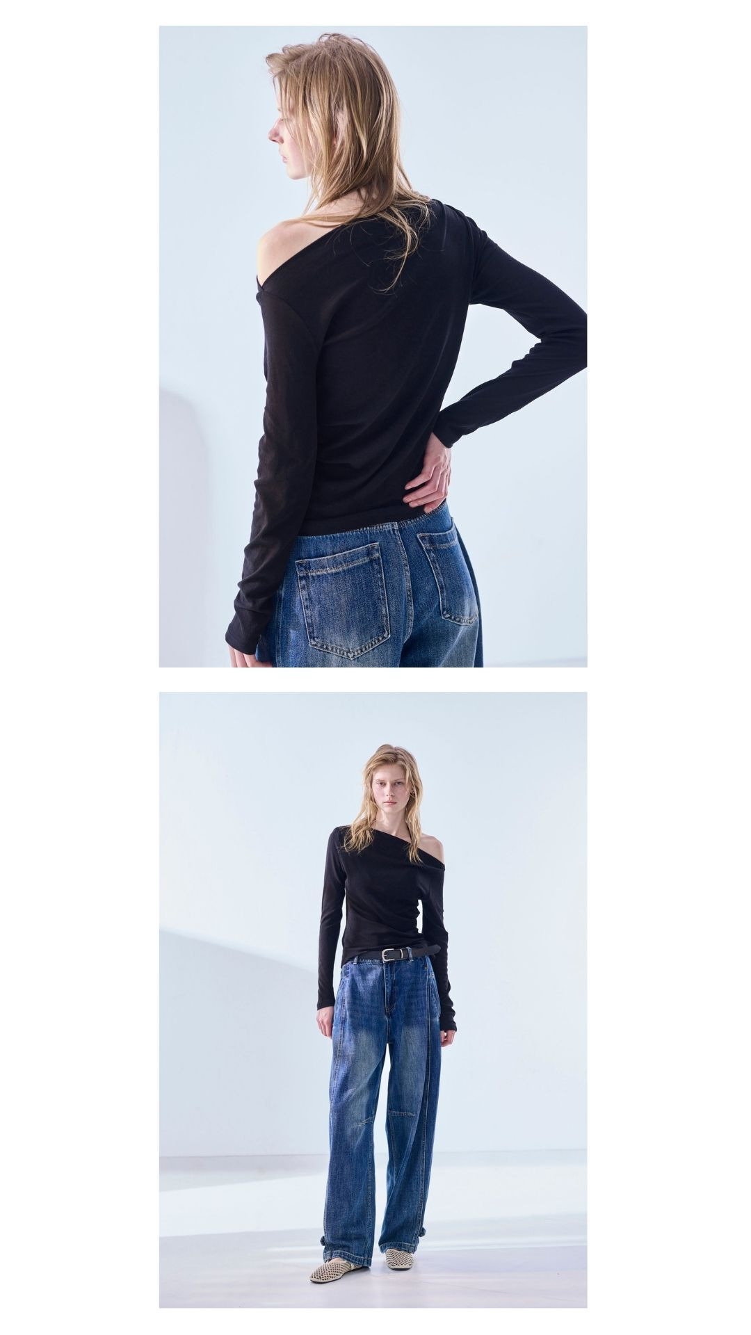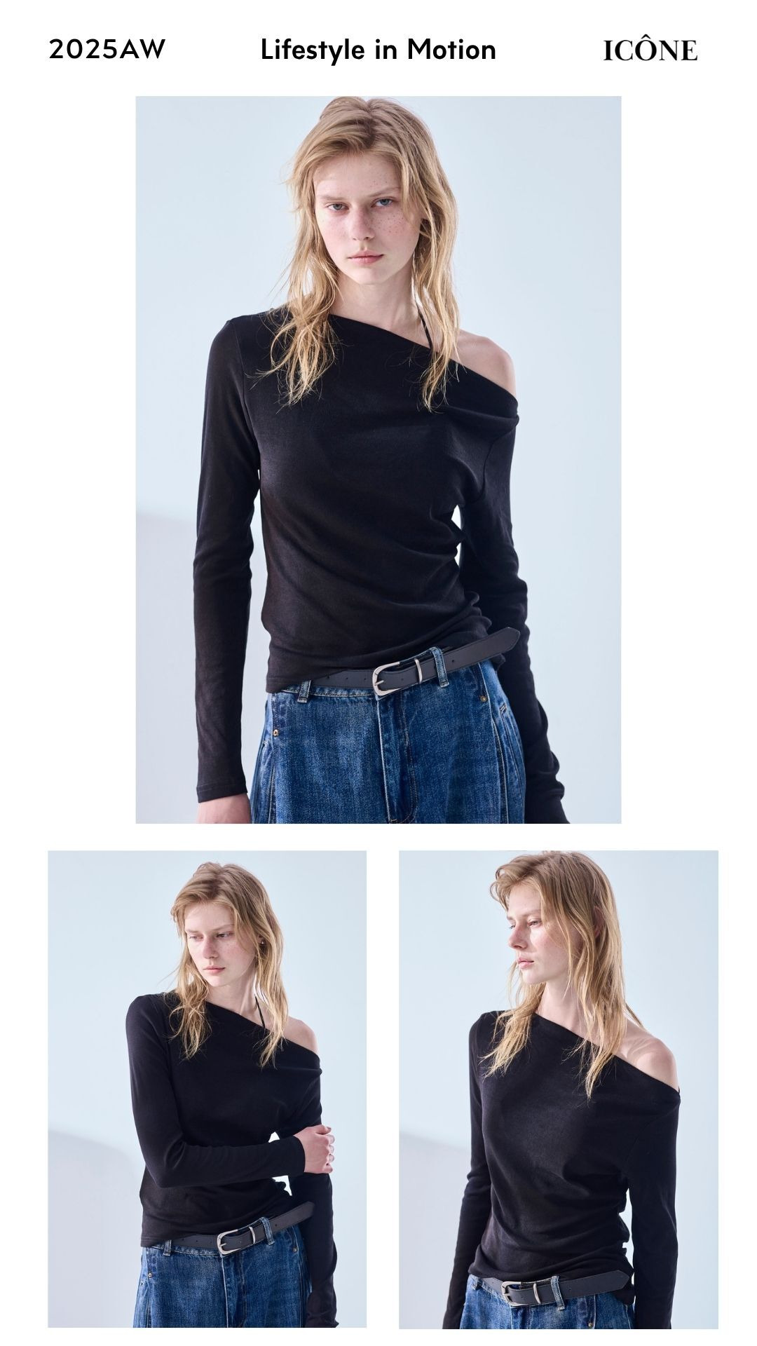 *領口一字線條延伸肩頸比例,讓整體視覺更輕盈