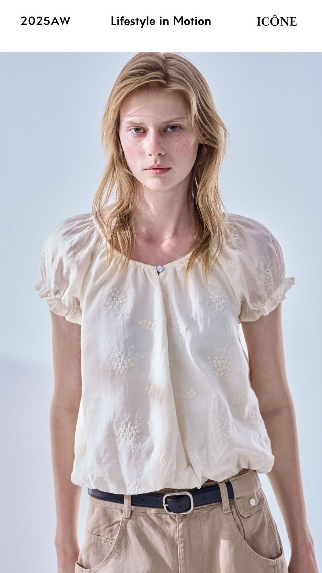 細緻綉花讓棉質上衣多了一份柔美,卻不失日常感。