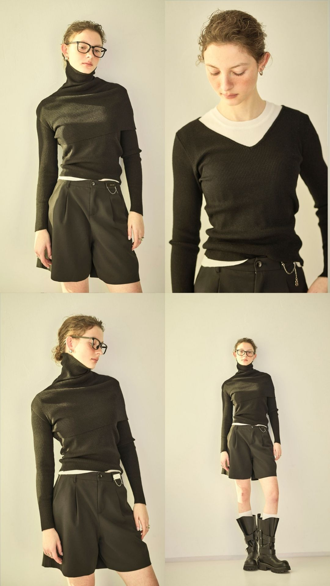 *高領斗蓬加 V領剪裁自然包覆頸部