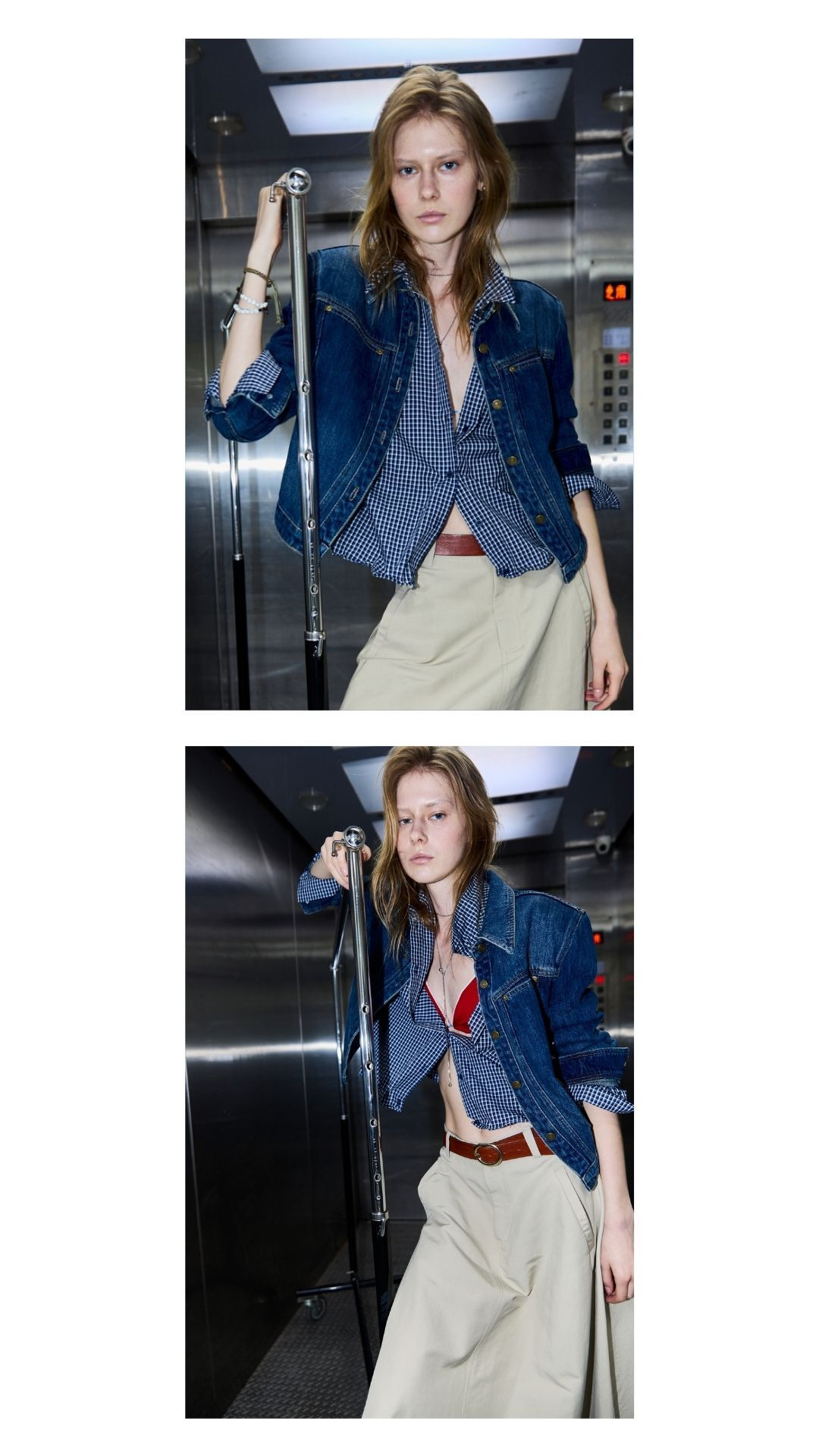 丹寧外套回到最經典的樣子,短版比例讓它更輕快俐落。