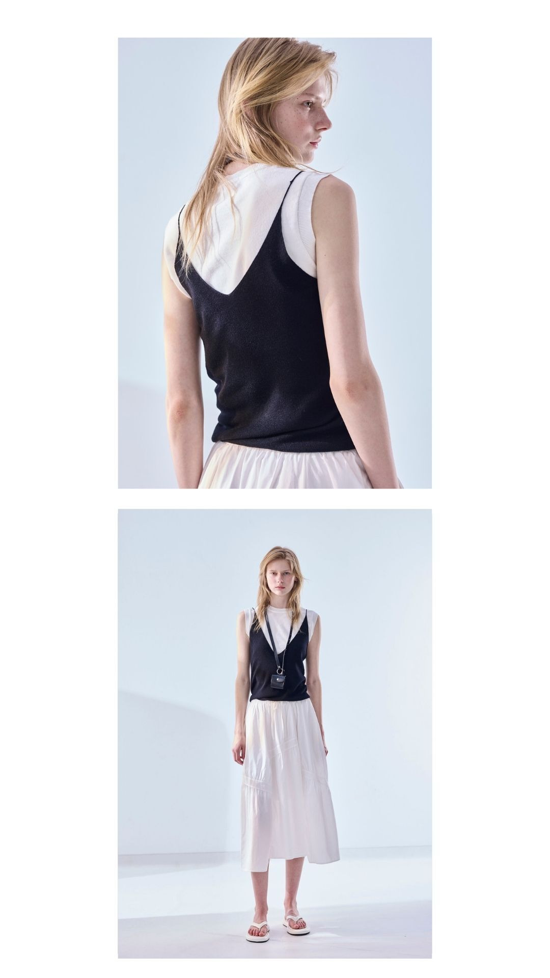 細肩帶與針織質地,讓簡單背心也帶著柔和輪廓。